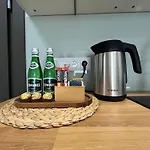 - ❓Existe uma cozinha disponível em Apartamenty Kapitanskie Kollataja 7A para uso dos hóspedes?Sim, Apartamenty Kapitanskie Kollataja 7A está equipado com kitchenette e oferece chaleira elétrica, refrigerador e utensílios de cozinha.